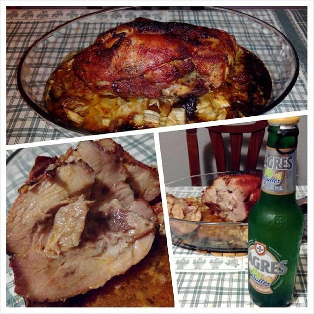 Na quinta feira passada, lá foi a Pá de porco, para o forno. A 160º C, durante3 horas e meia, foi cozinhando, ganhando uma cor fantástica!